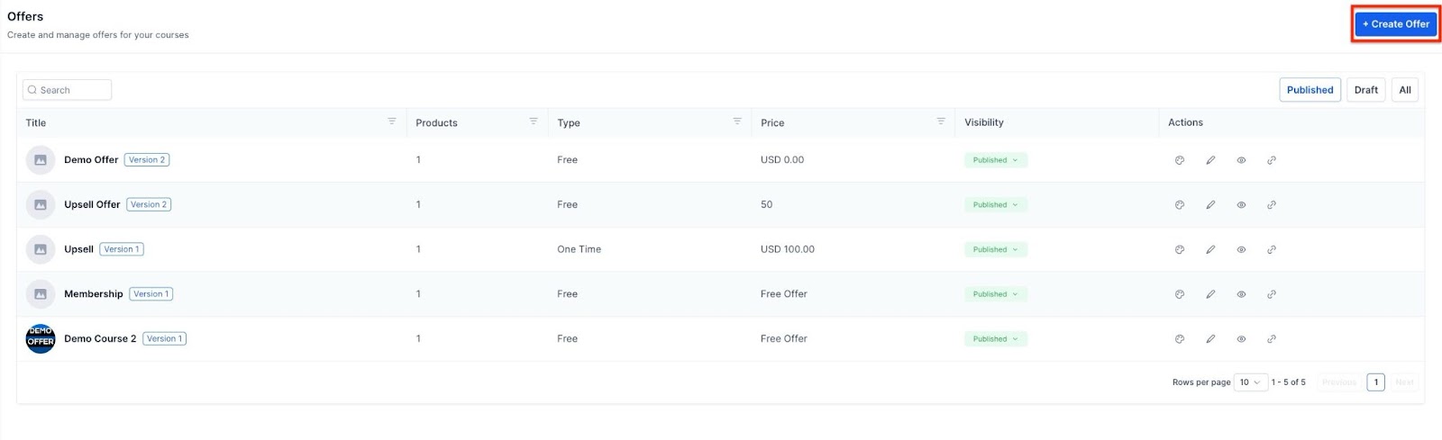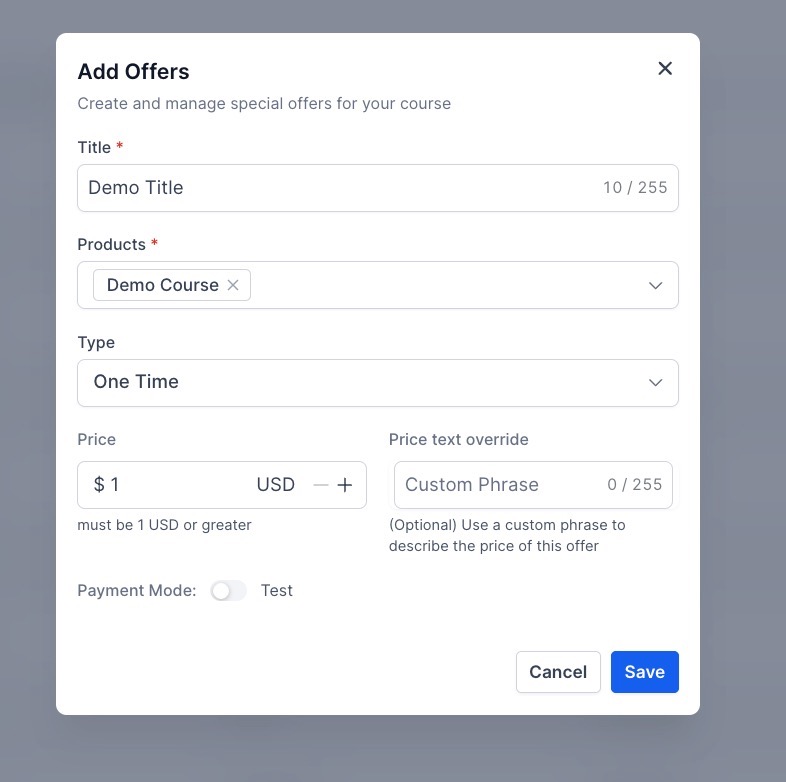 - Navigate to Your Products > Courses > Offers
