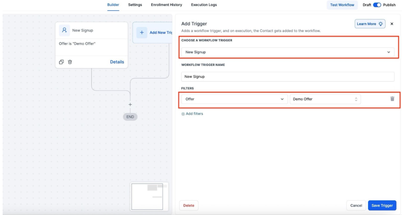 - Add the trigger Contact Tag then filter for the added tag and save.
