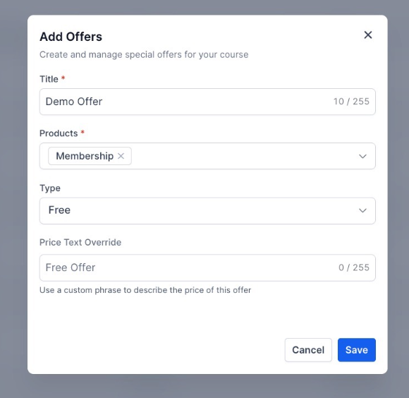 Please note that the membership offer must be published for it to appear in the dropdown.