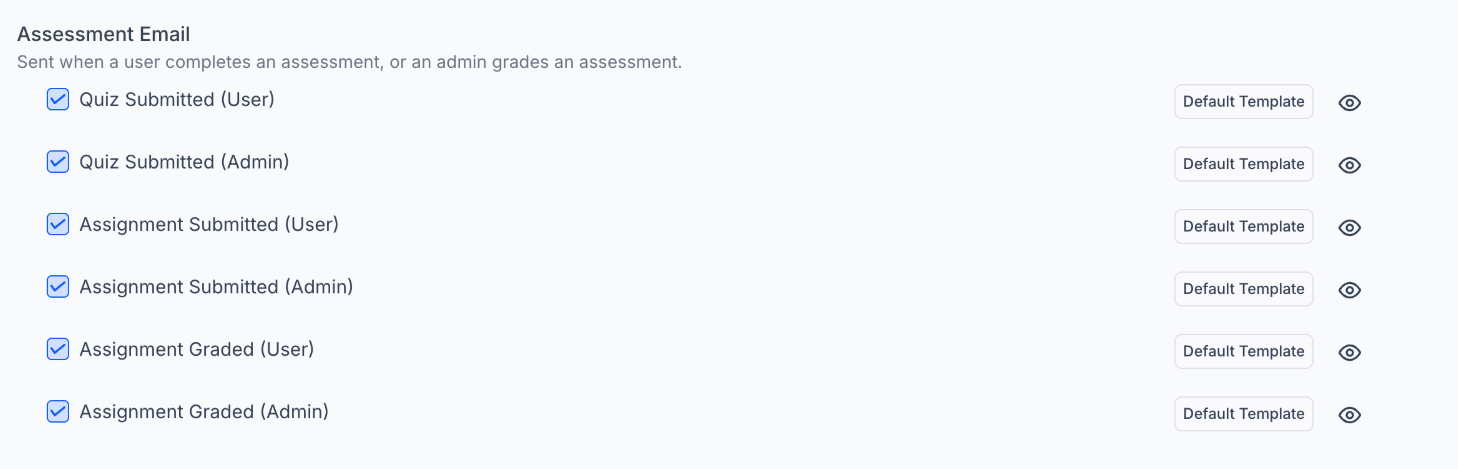 - This adds assessment and comment email notifications for instructors and learners, improving visibility on quiz submissions, assignments, grading, and comments.
