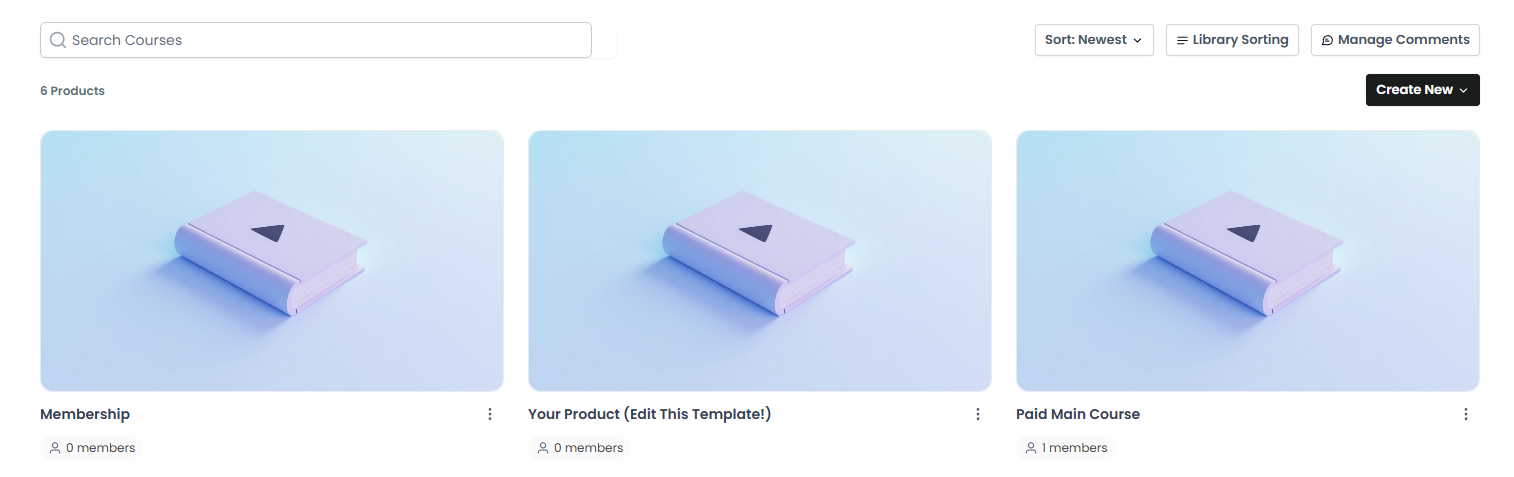 To access your courses, navigate to Your Products on the left > Courses at the top > From the dropdown select Products