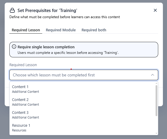 This status is useful when you want your members to go first through a specific lesson and/or a whole module to enable a new module. You have the option to lock by a post/lesson, by an entire module. or both: