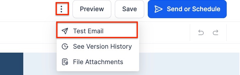 Click on the 3 dots on the left side of the Save button and click on Test Email. Add the details and click on “Send Test Email”.
