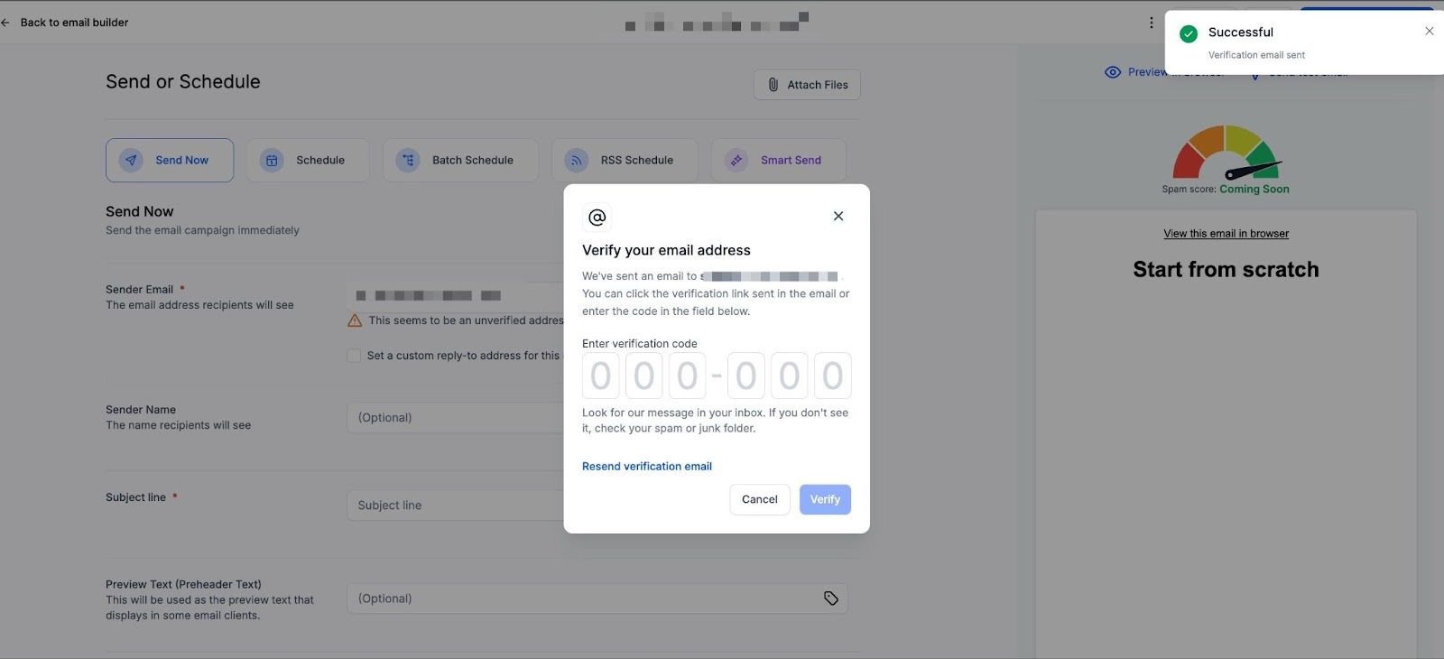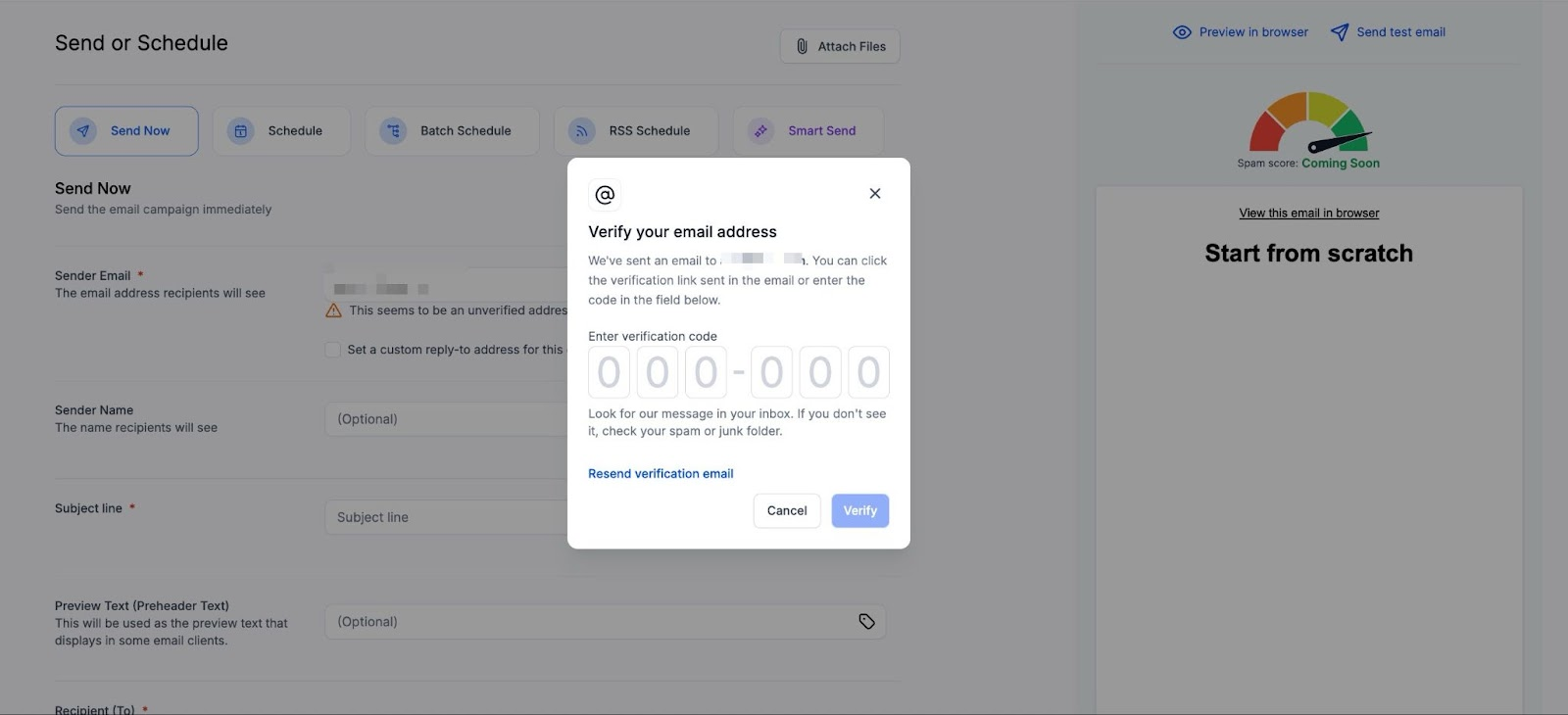 Verifying emails before sending campaigns helps prevent identity spoofing and ensures your messages reach the intended recipients. To use this feature, follow these steps: