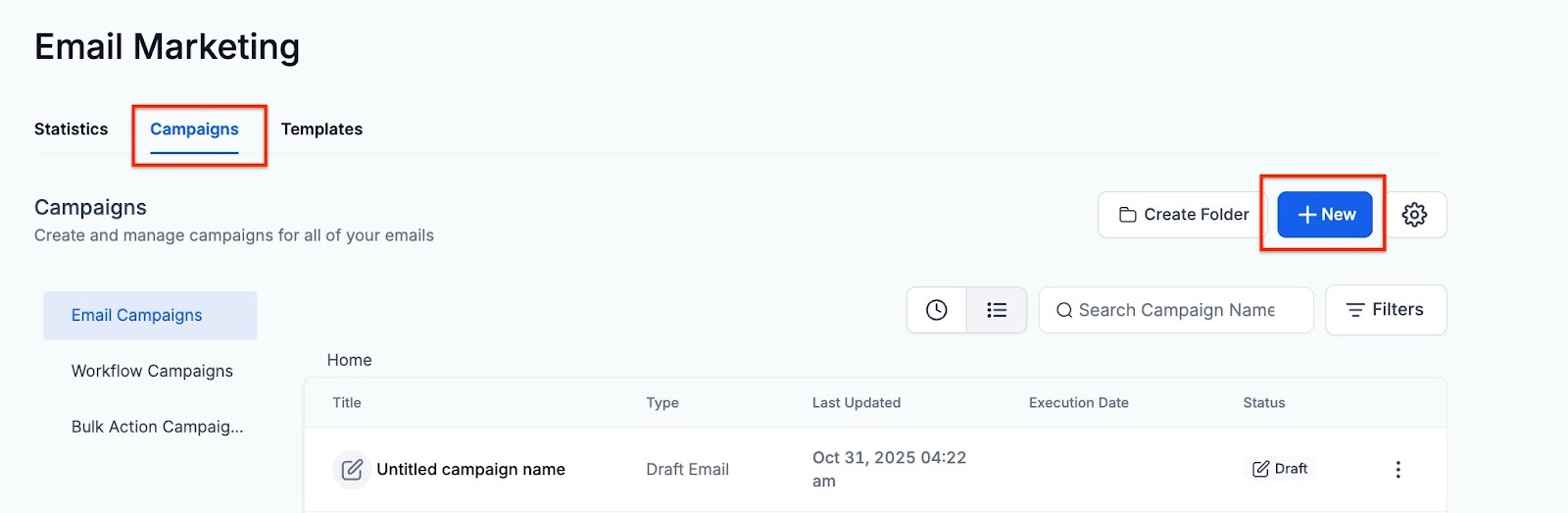 - Head to Marketing > Emails > Campaigns - Create Campaign