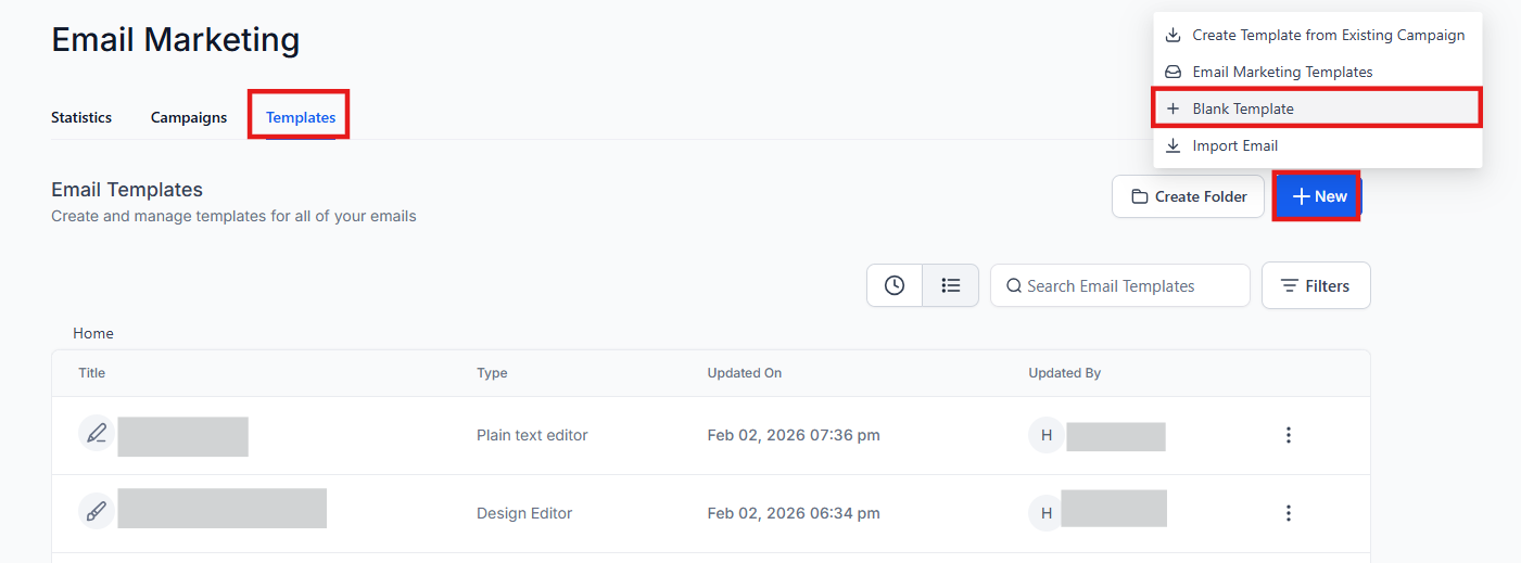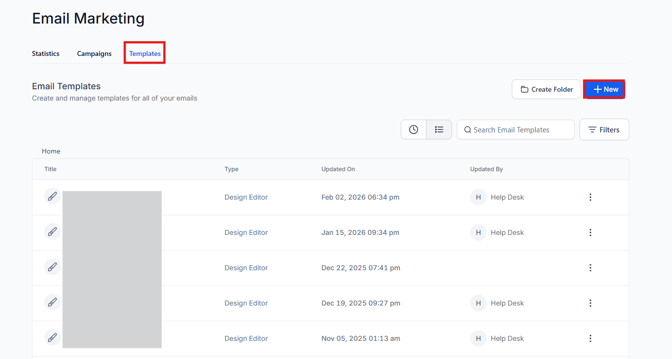 - Navigate to "Email Marketing" and select "Templates".