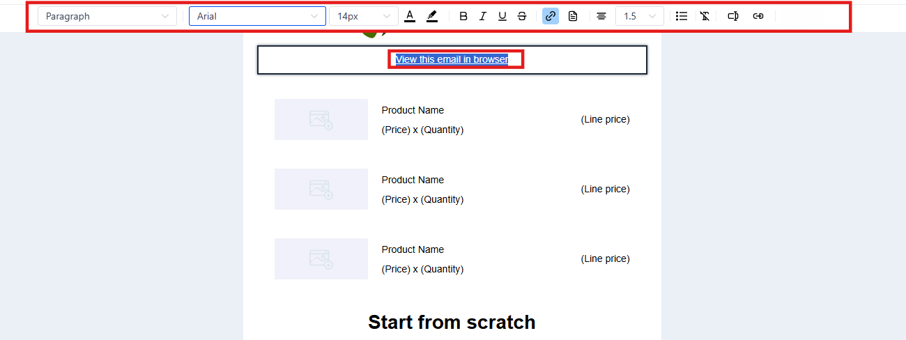 In the Code Editor, you can use HTML to modify and customize the email with code.