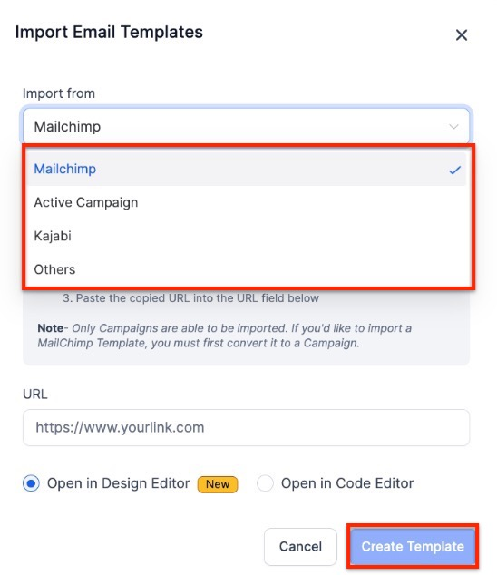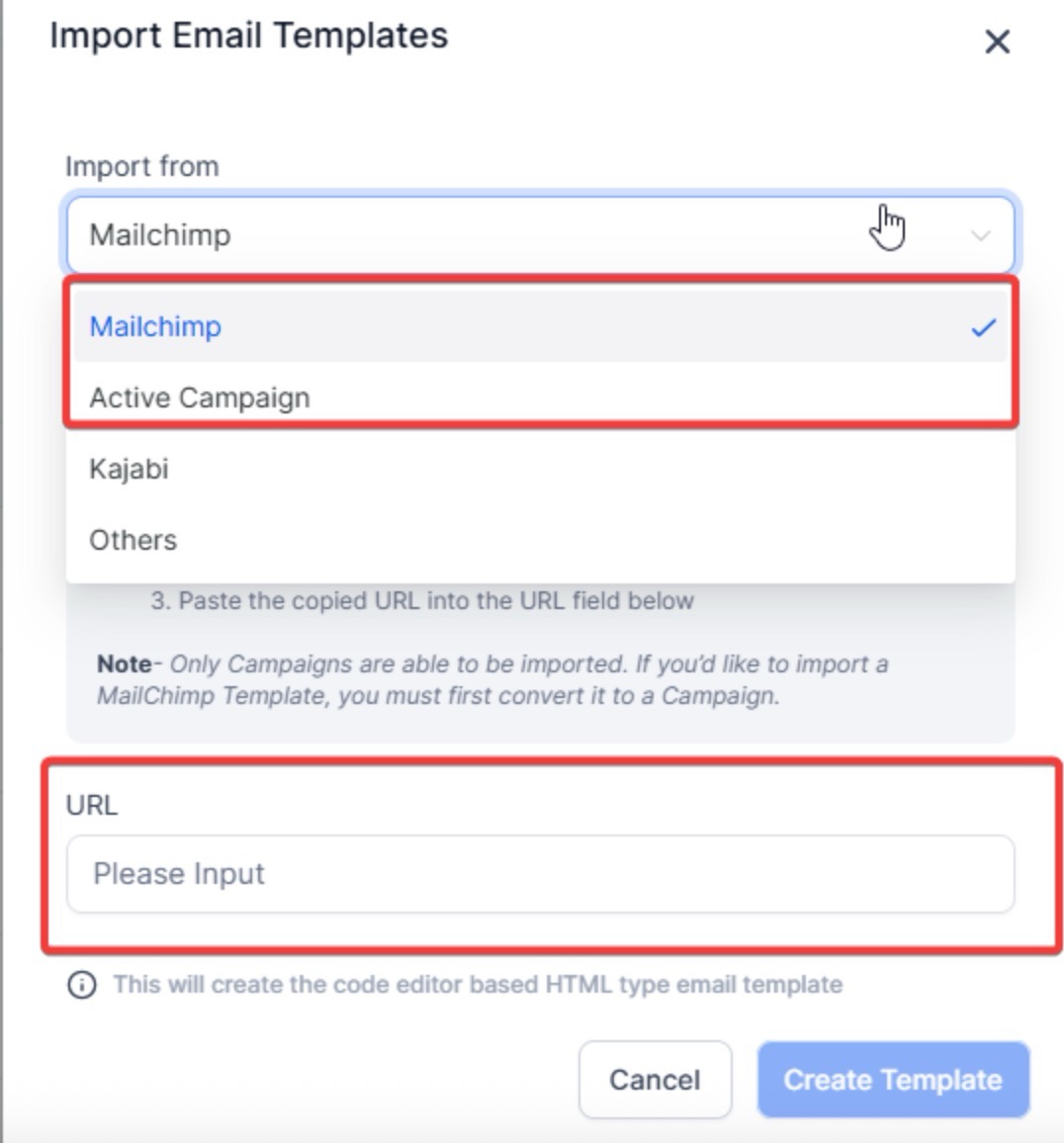 4. Can I import email templates not in campaign format from Active Campaign or Mailchimp? Only email campaigns can be directly imported from Active Campaign or Mailchimp. If you have templates not in a campaign format, save them as a template in Active Campaign or convert them to a campaign in Mailchimp before importing.
