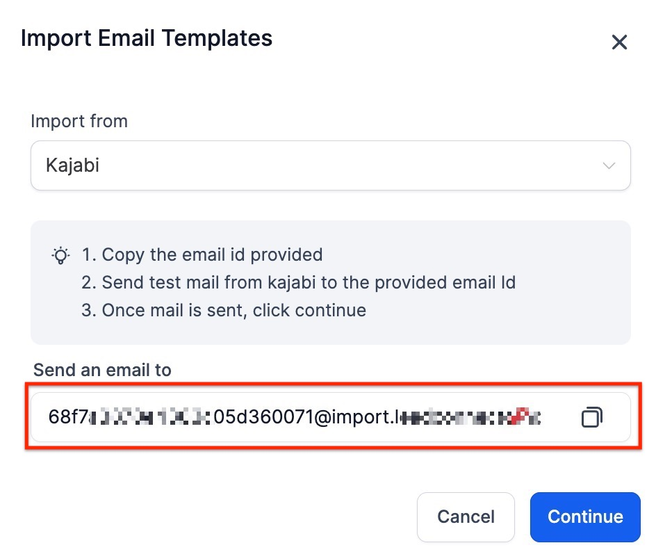 3. What is required to import an email template from Kajabi or other platforms? Copy the email address provided by your Mastermind account and send a copy of the desired email from Kajabi or any other desired platform to this address. The system will automatically import the template into your Mastermind account.