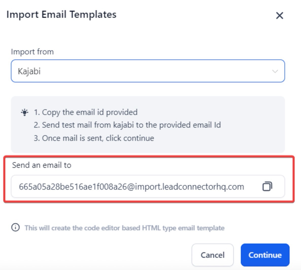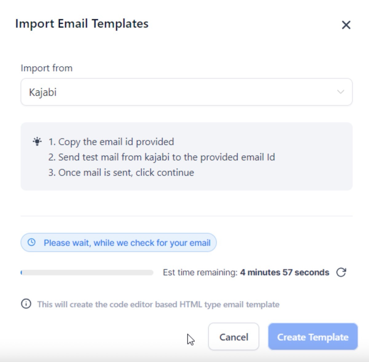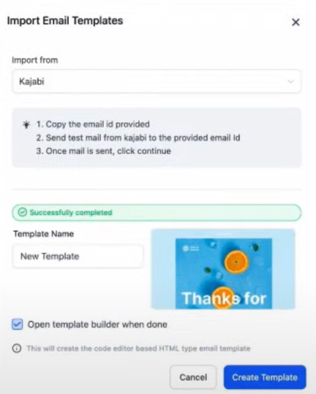 5. For Kajabi or other platforms, wait for the system to automatically import the template after sending the email.