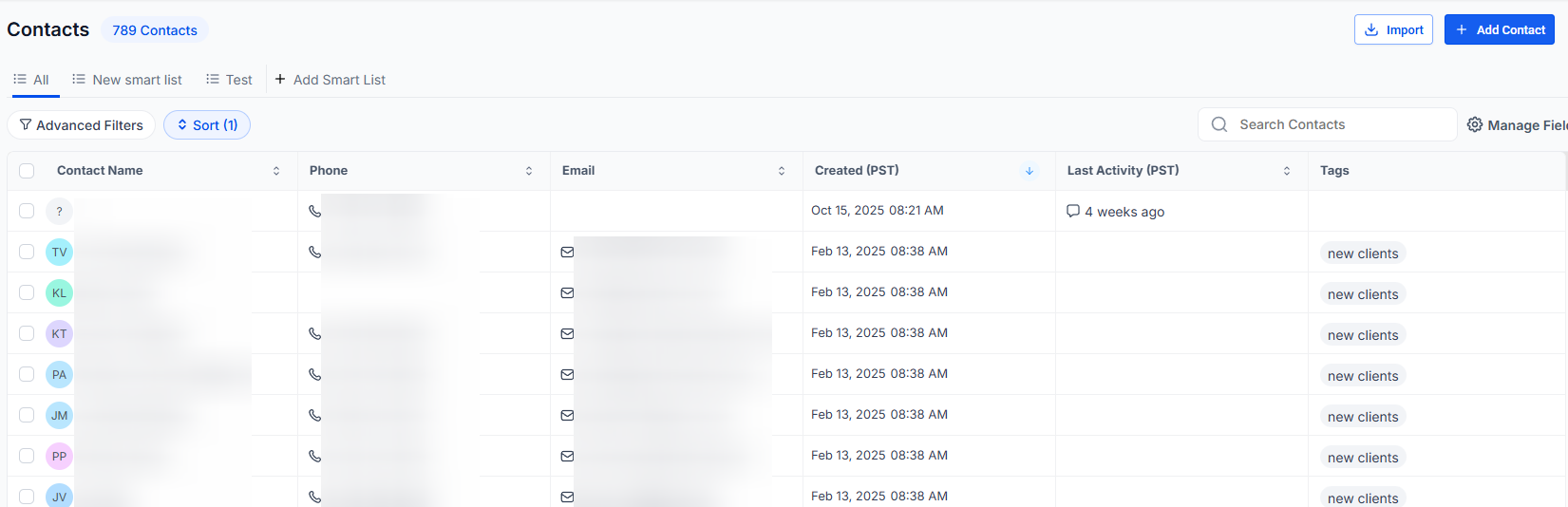 - Navigate to Contacts: Go to the Contacts section in your platform.
