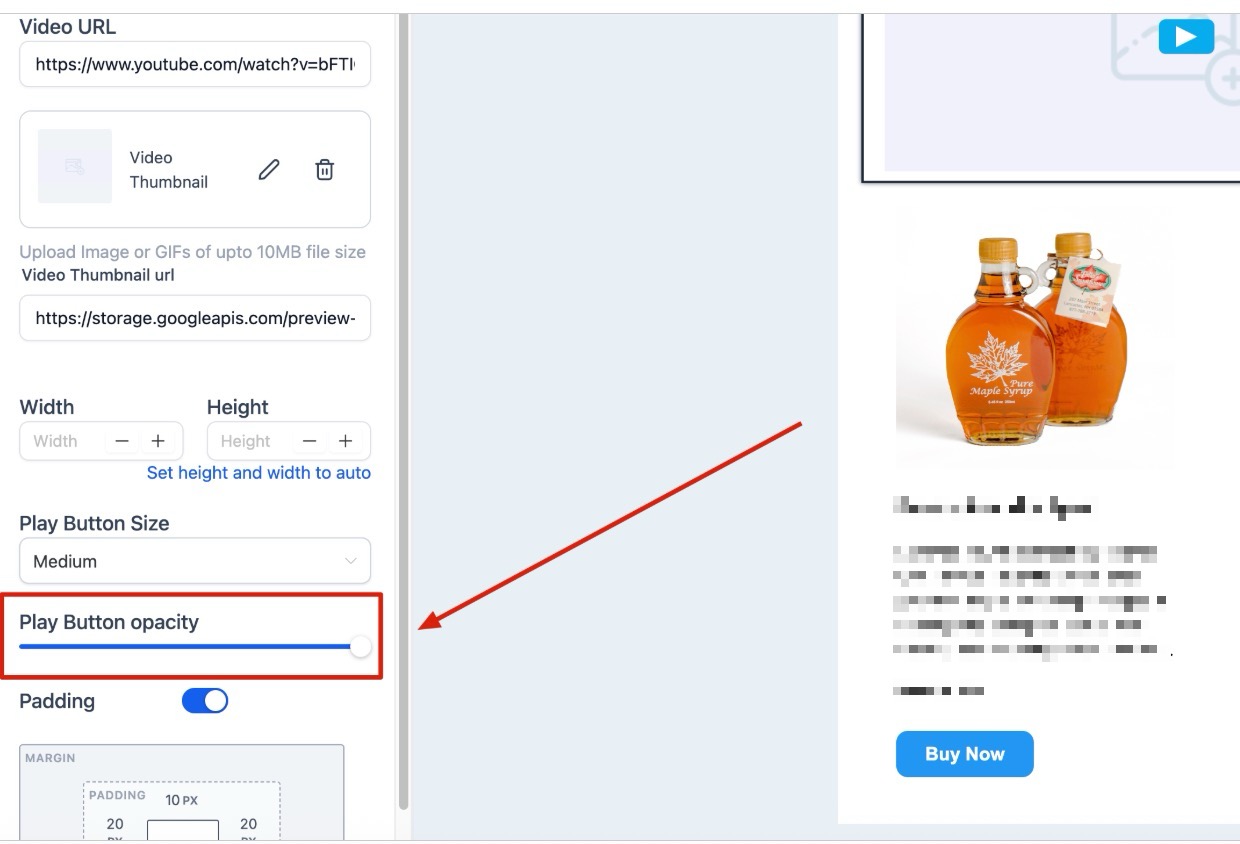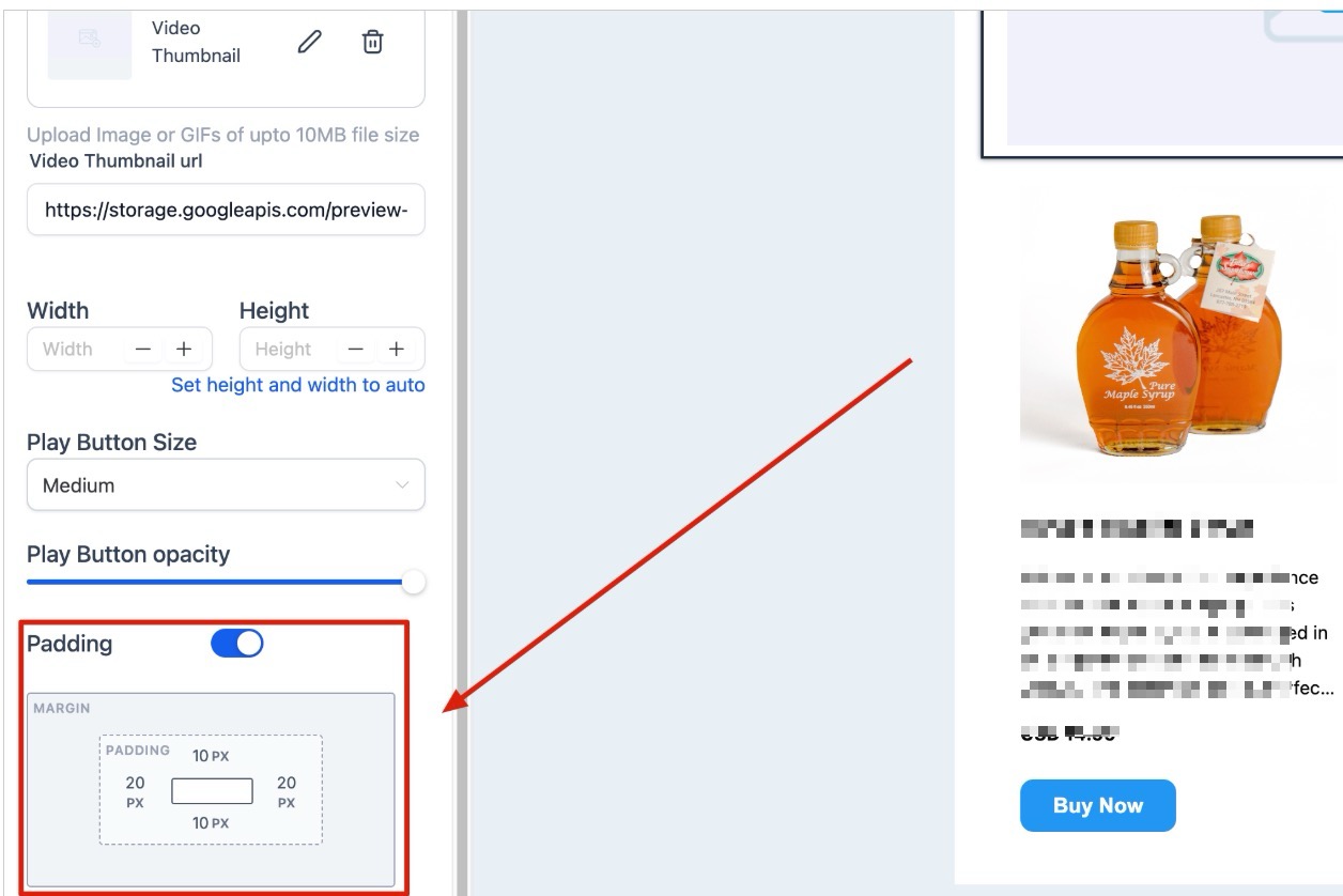 Padding: You can add padding to the video element using this field. Check the image below to see how it looks in action