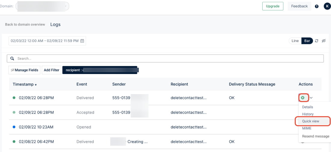 Sometimes, issues may happen that prevent your email from being sent. When this happens, you will see an error icon next to that email. To gain more information about why the email was unsuccessful, click on the red triangle icon to know more details.