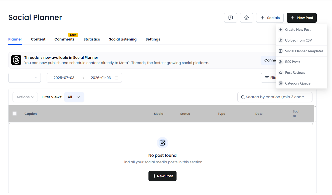 The Social Planner has been designed to improve user experience. This feature introduces a more intuitive connect screen, better categorization, tagging options, and enhanced pagination, making it easier to manage your social media accounts.