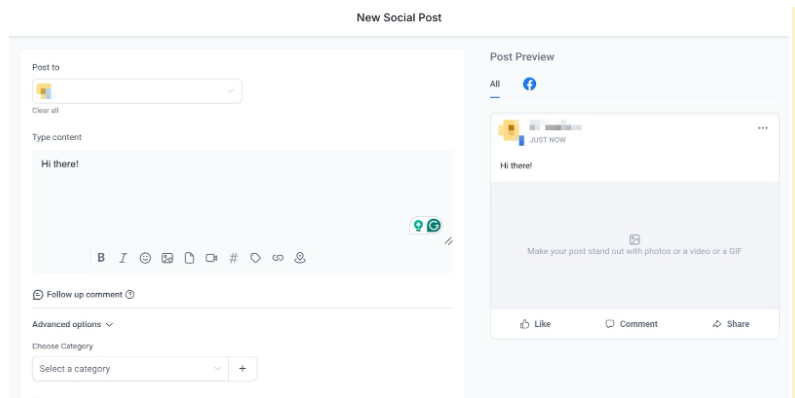 3- Add Content: Write your post and upload images if needed.