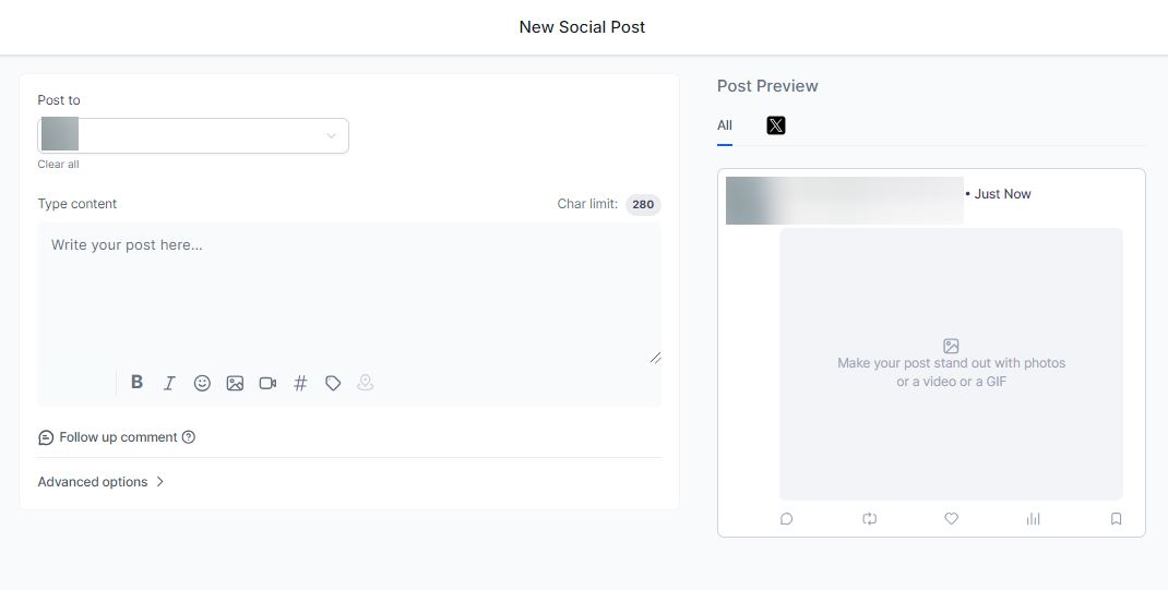 - Alternatively, Users can also create a single post that includes both images and videos, allowing simultaneous scheduling across platforms like YouTube, Instagram, and TikTok, saving time by avoiding multiple individual posts.