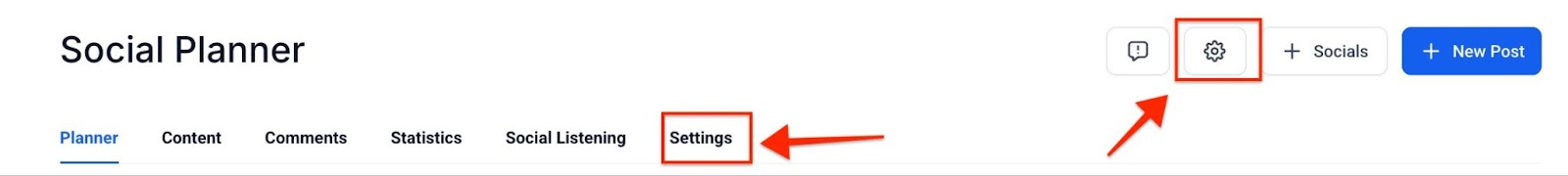 - The gear icon in the top right corner will direct you to the “Manage Social Accounts” page where you can add or remove accounts.