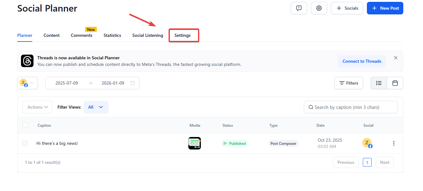 Manage your scheduled posts from the Social Planner dashboard in the list