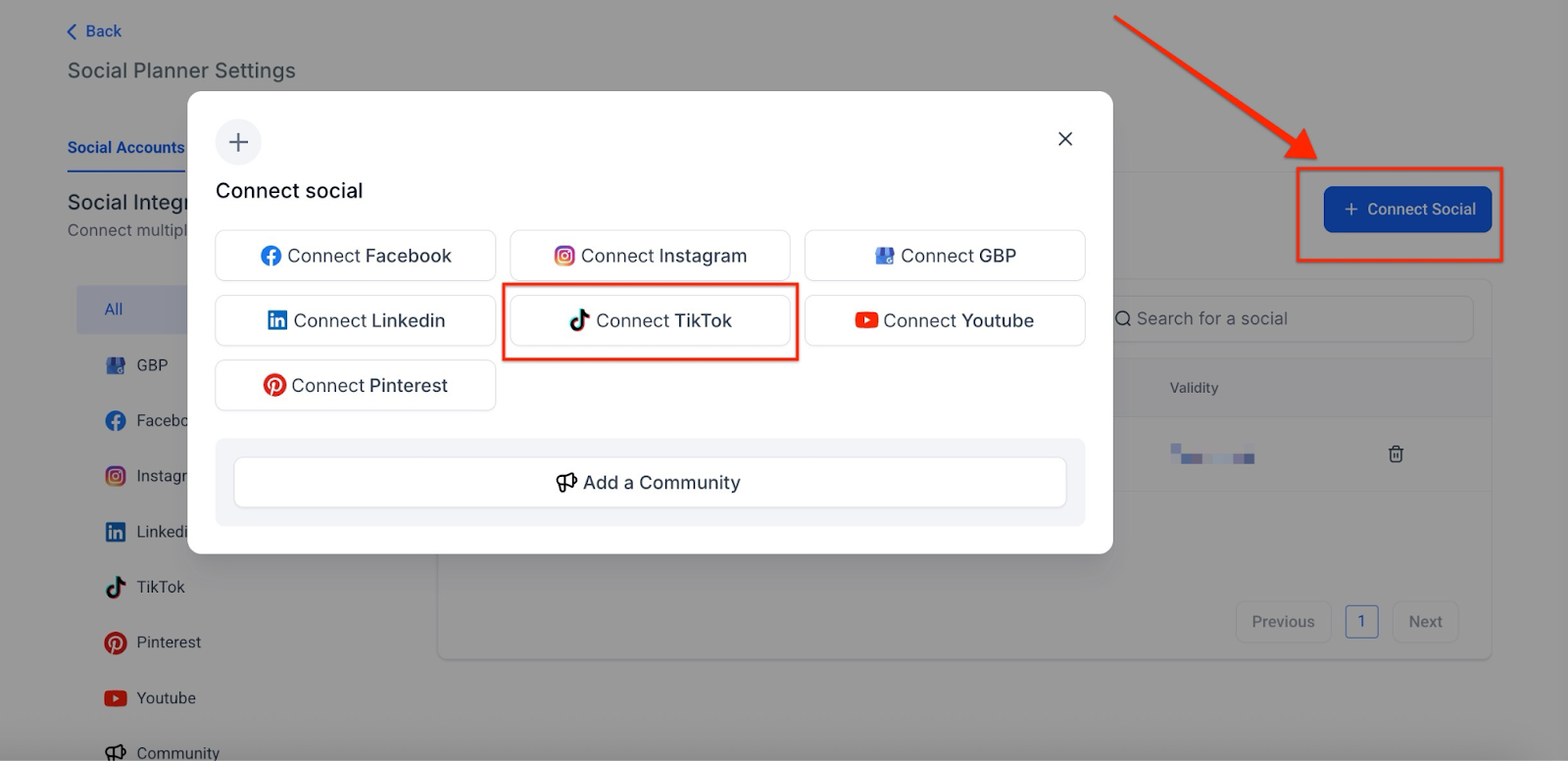 - Connecting your TikTok personal account to the Social Planner simplifies content management.