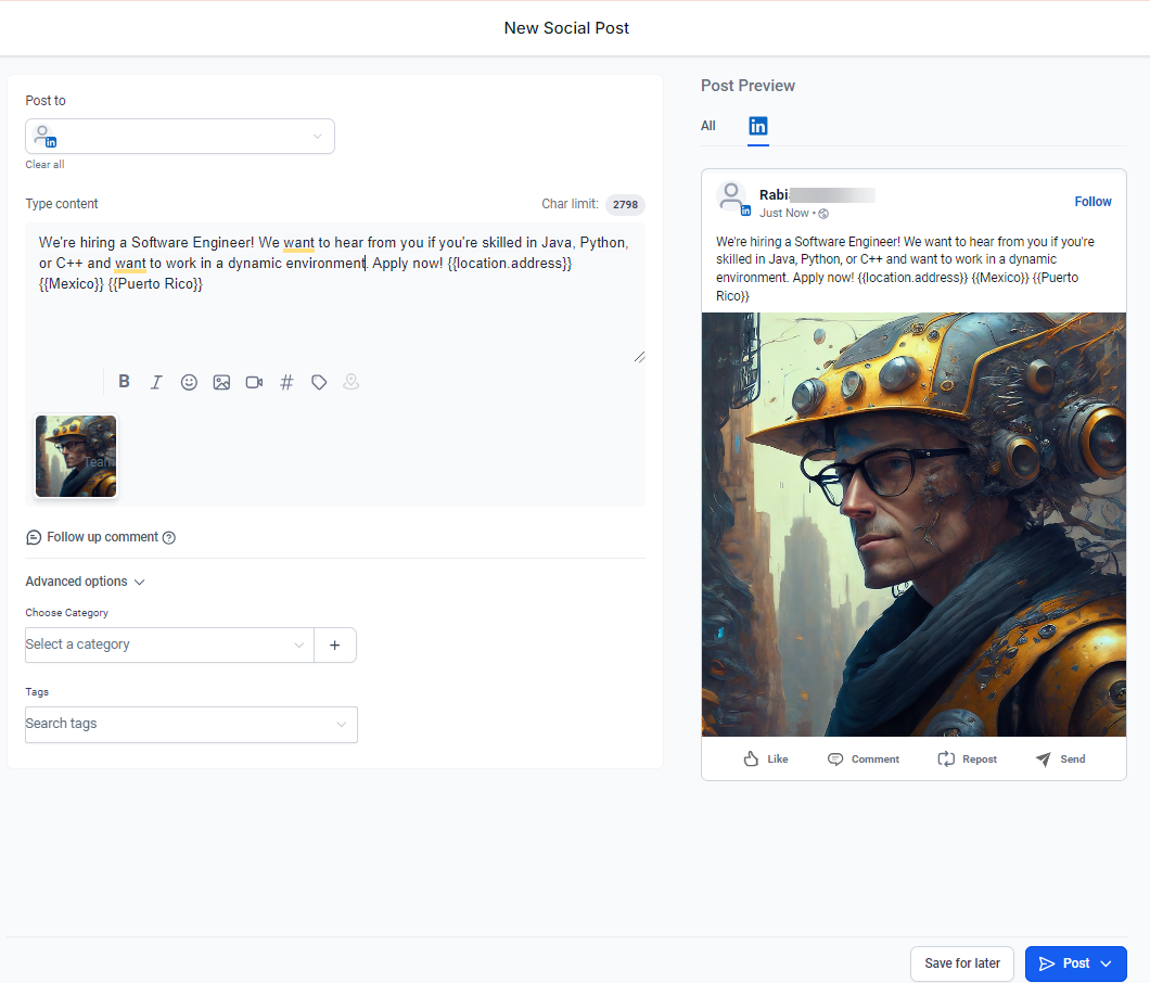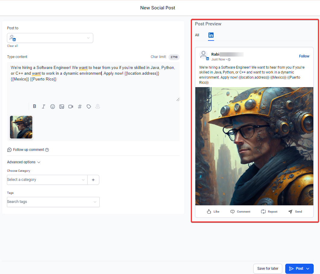 - Visualize Your Post: On the right-hand side of the screen, you can preview how your post will appear. This feature allows you to ensure that your post looks as intended.