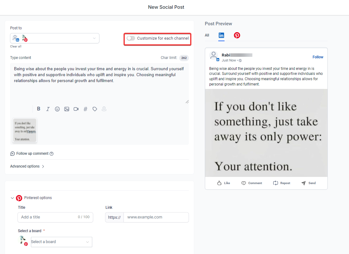 This feature lets you tailor posts for each platform, meeting specific requirements and reaching diverse audiences.
