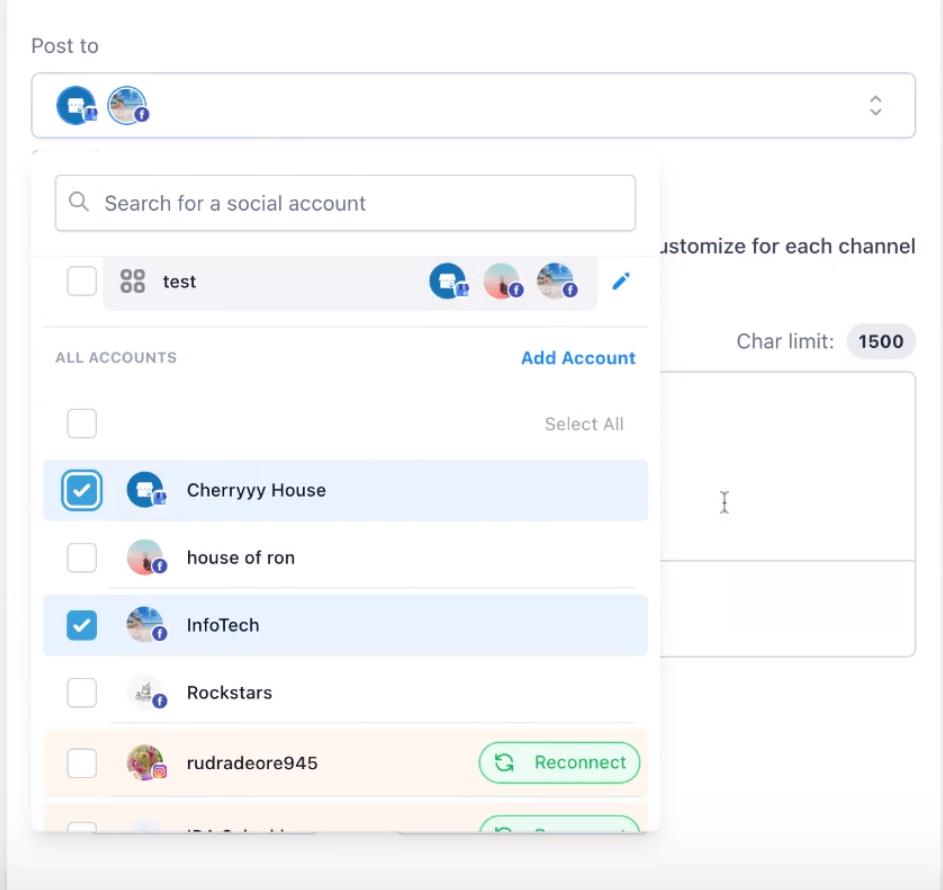 - Select Your Posting Account: In the new window, choose the social media account(s) to which you'd like to post. You can select one or multiple accounts, depending on your strategy.