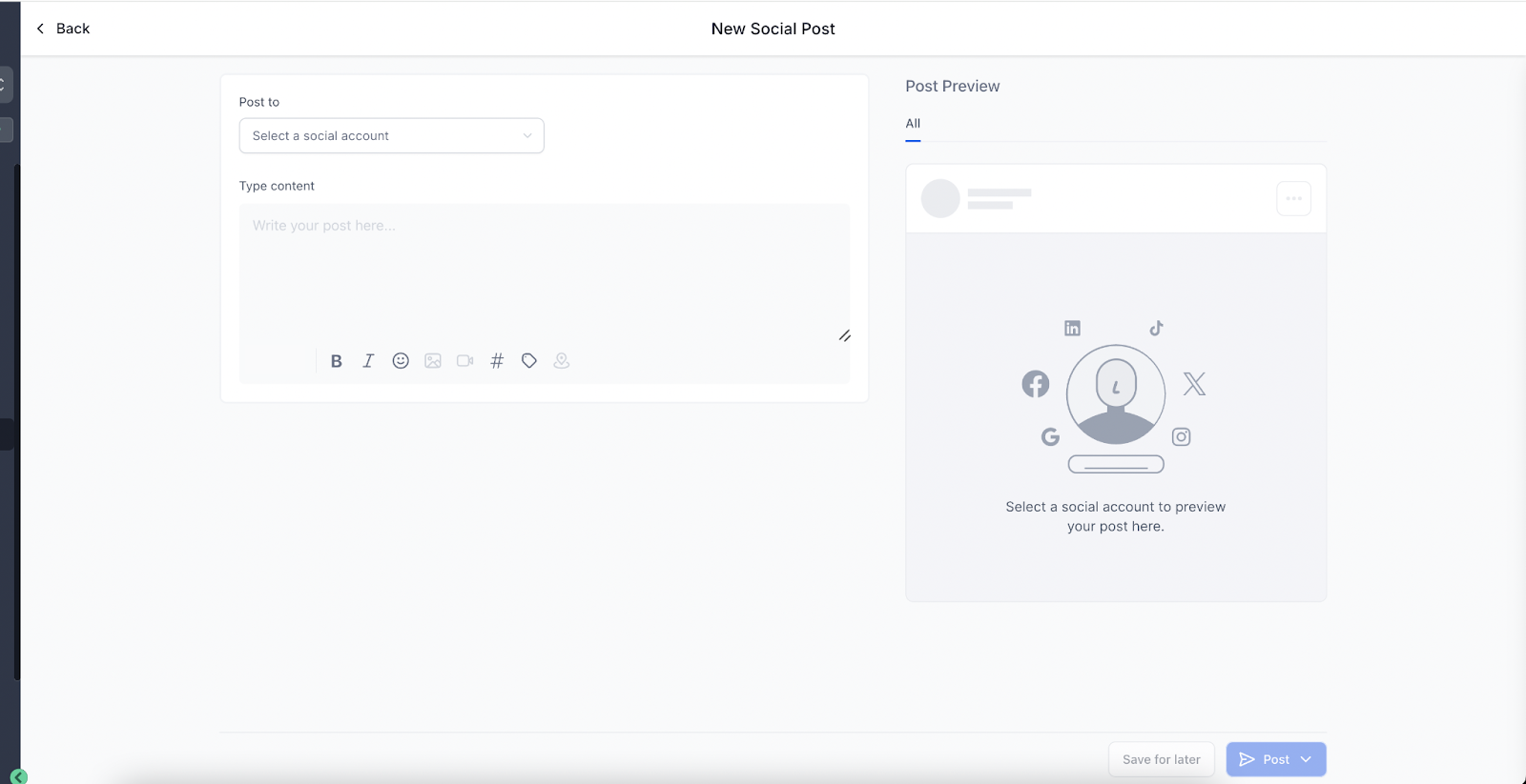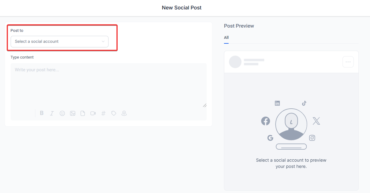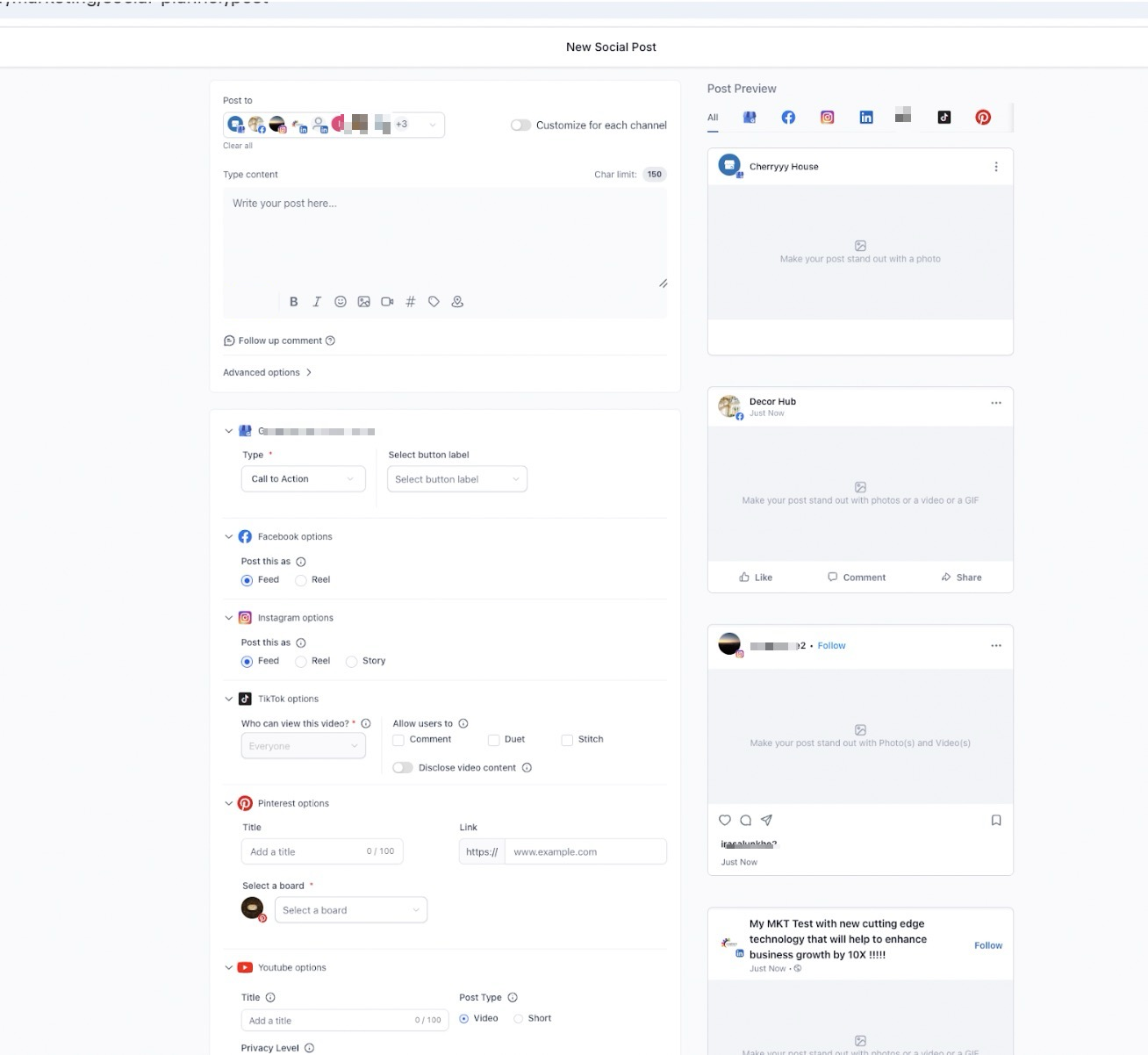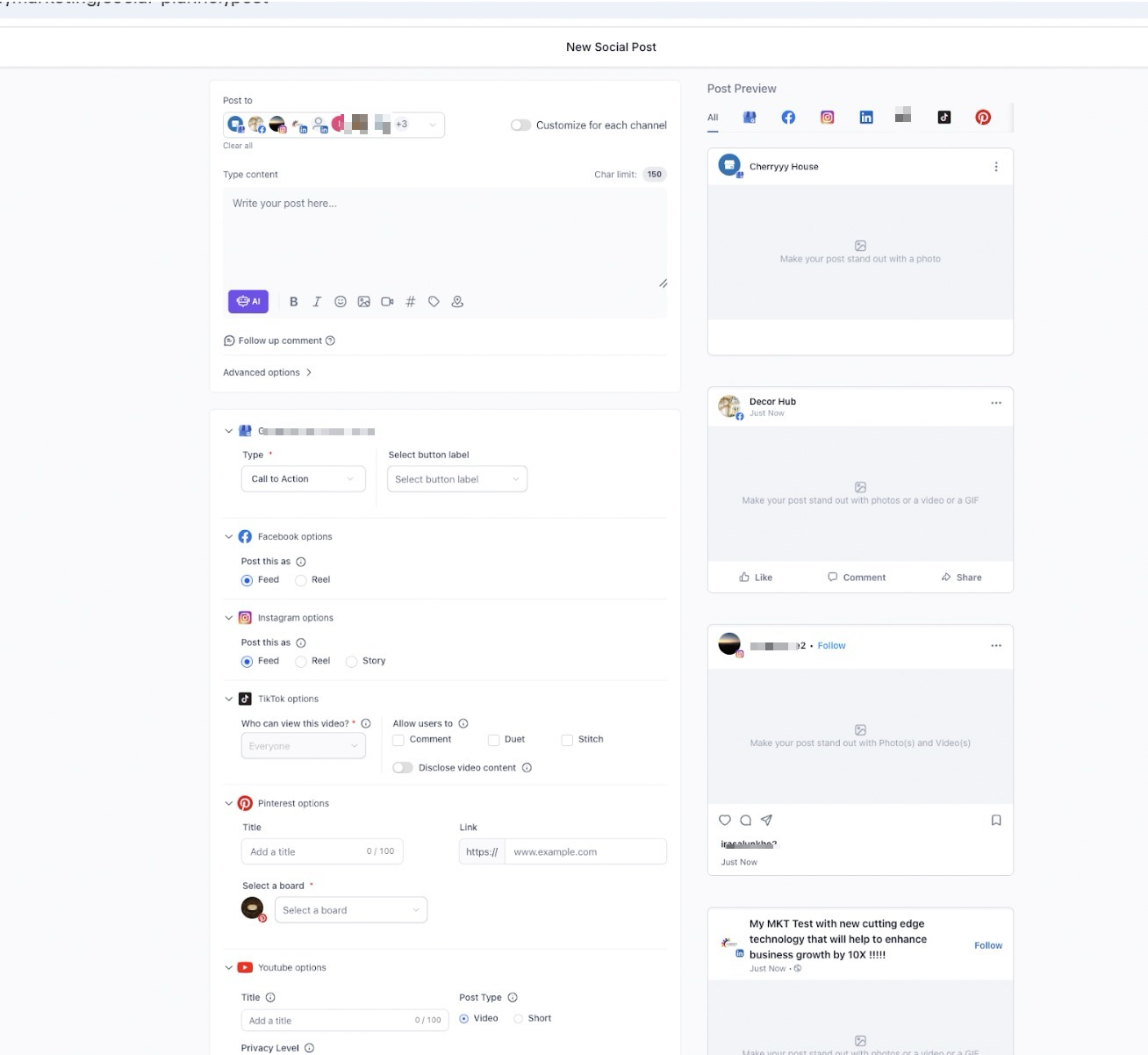 - Alternatively, Users can use the post composer to add both images and videos in a single post, allowing them to schedule posts across platforms simultaneously, including YouTube, Instagram, and TikTok.
