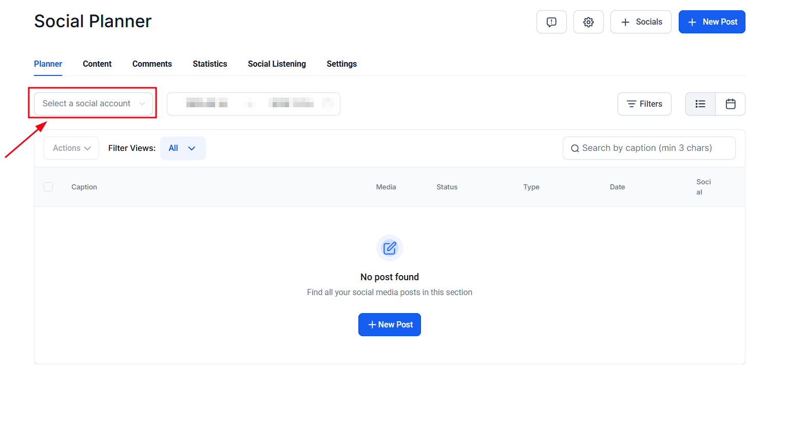 Step One: Navigate to Marketing & Sales > Email and Social Media > Social Planner