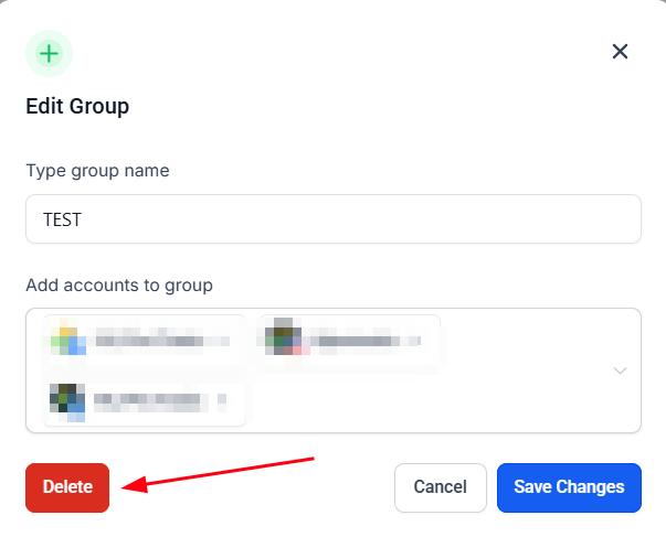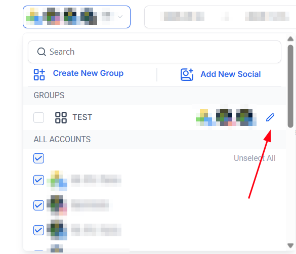 To edit the accounts in a group, click on the pencil icon next to the group name, then add or remove accounts as needed.