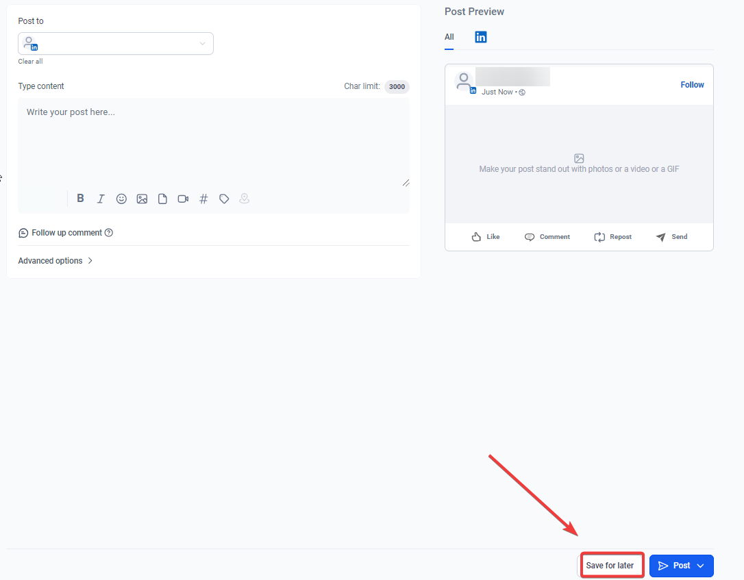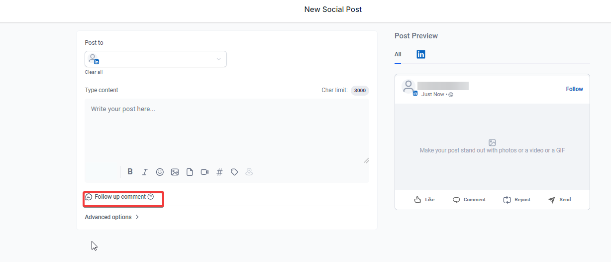 Step 3: Within the new post, click the “Follow up Comment” button to enable the feature.