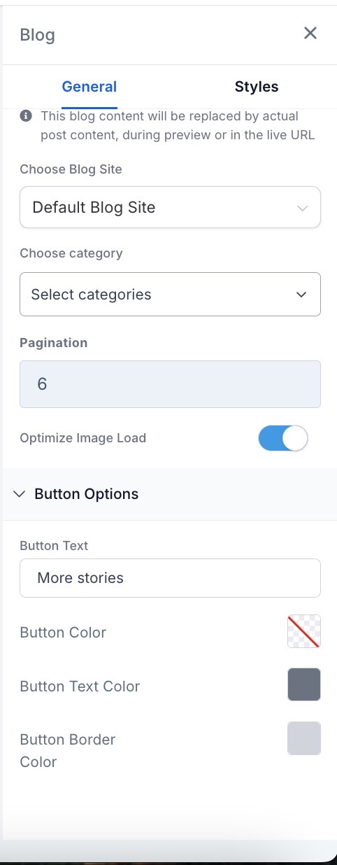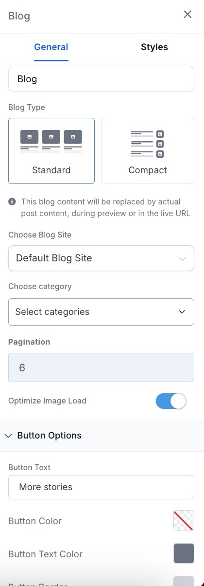 You can edit the layout of the blog site, list view, card details, and individual blog post pages by navigating to the Blog Builder. Use the customizable Blog Home and Blog Post pages to design your layout.
