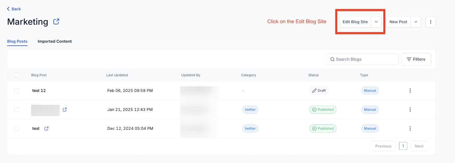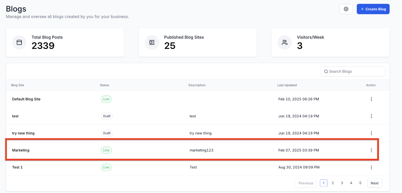 2- Select the Blog: From the list view of blogs, click on the blog name you want to edit.