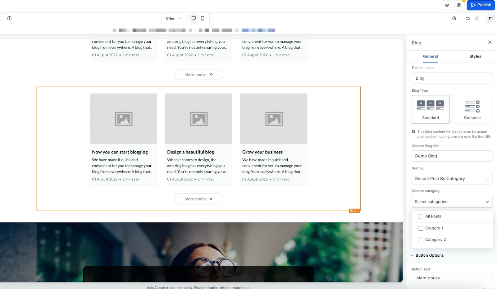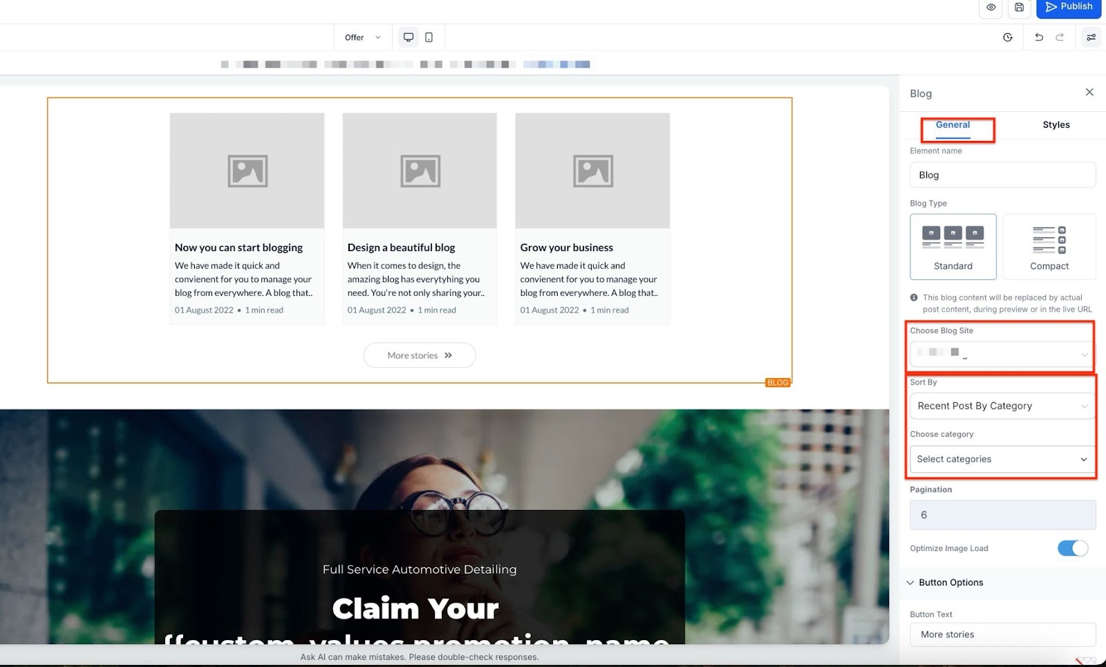 5- Select Blog Post: Select the Blog Site and choose the category from the General Settings.