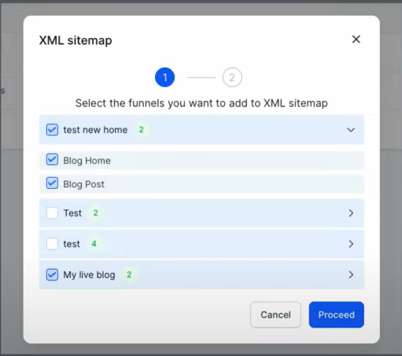 - Navigate to “Marketing & Sales” Tab > “Funnels and Pages” on the left > "Blogs" at the top
