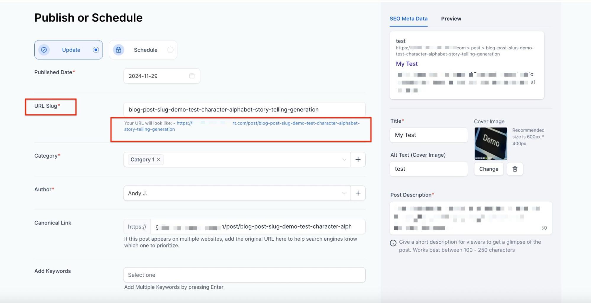- Save your settings to apply the canonical URL to your blog post.