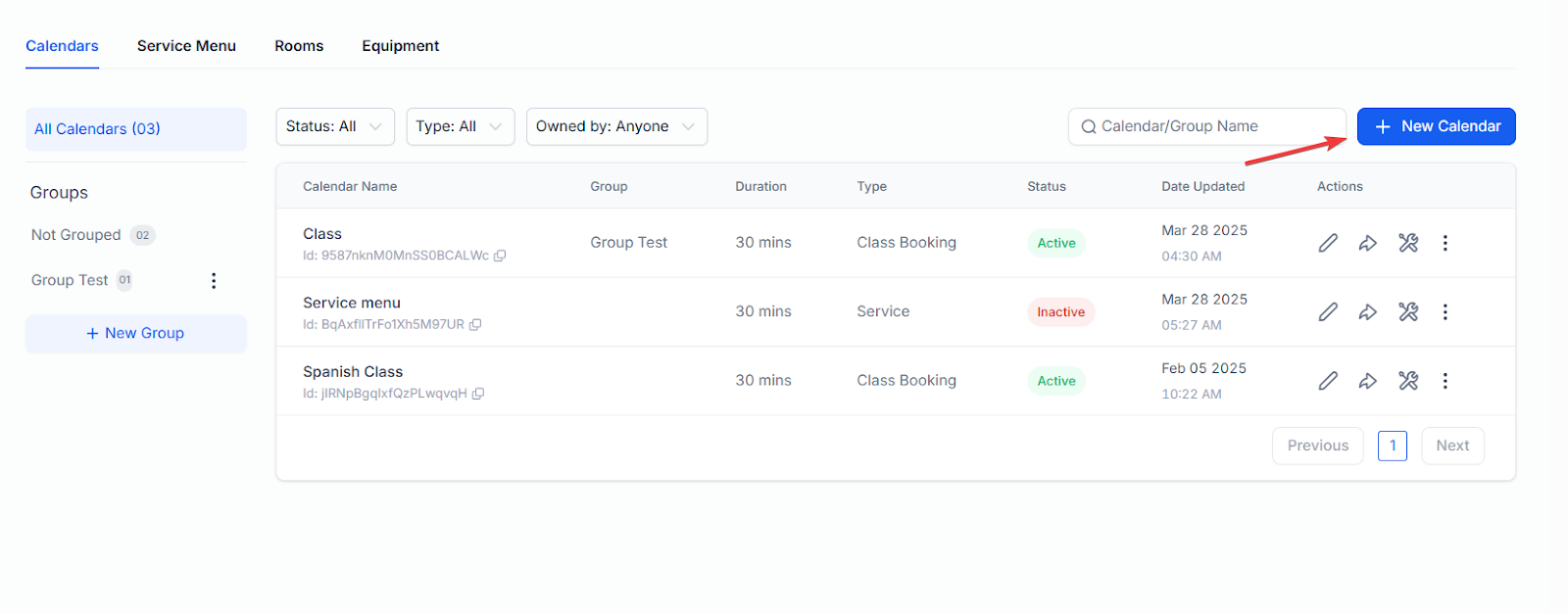 - Utilize the '...' option to: duplicate, retrieve the embed code, share scheduling or permanent links, edit calendar settings, activate/deactivate, or even delete from your account. You can also move calendars to specific groups if needed.