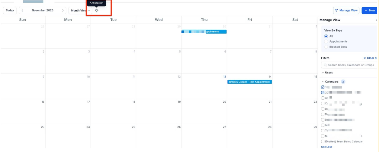 - Click on the date or time slot on the calendar where you want to schedule the appointment. Alternatively, click the “New” button at the top right of the page.