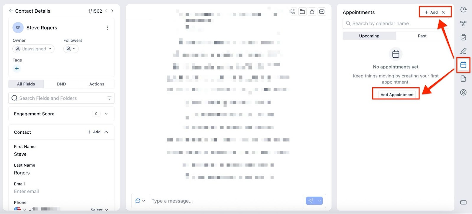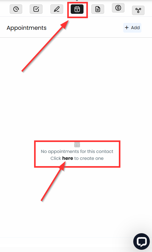 Important: Notes added in appointments are synced to the associated contact within the Contacts, Opportunities, and Conversations tab. However, notes added directly in the contact will not sync back to the appointment.