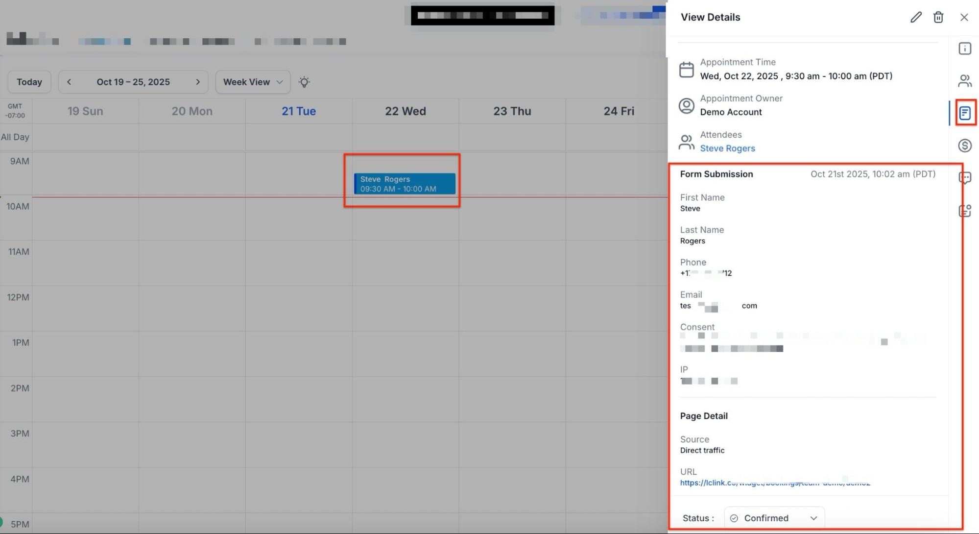 - Form Submissions: You can view form submissions directly in the Appointment Modal, offering a simplified way to access booking information without needing to switch between modules.