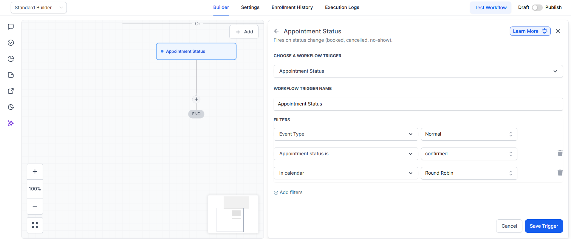 By using these components, you can automate the way you handle your appointments. You can use the trigger to automatically initiate a workflow given a series of filters.