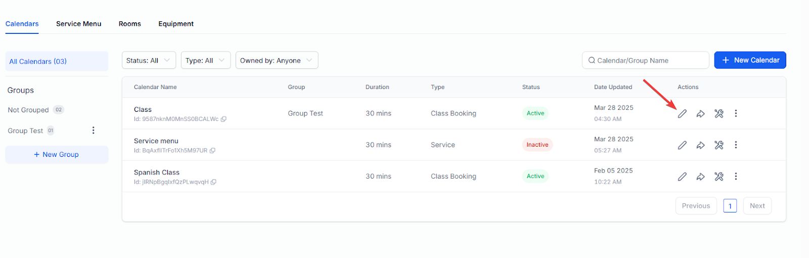 - Click the Pencil Icon in front of the calendar you want to edit.