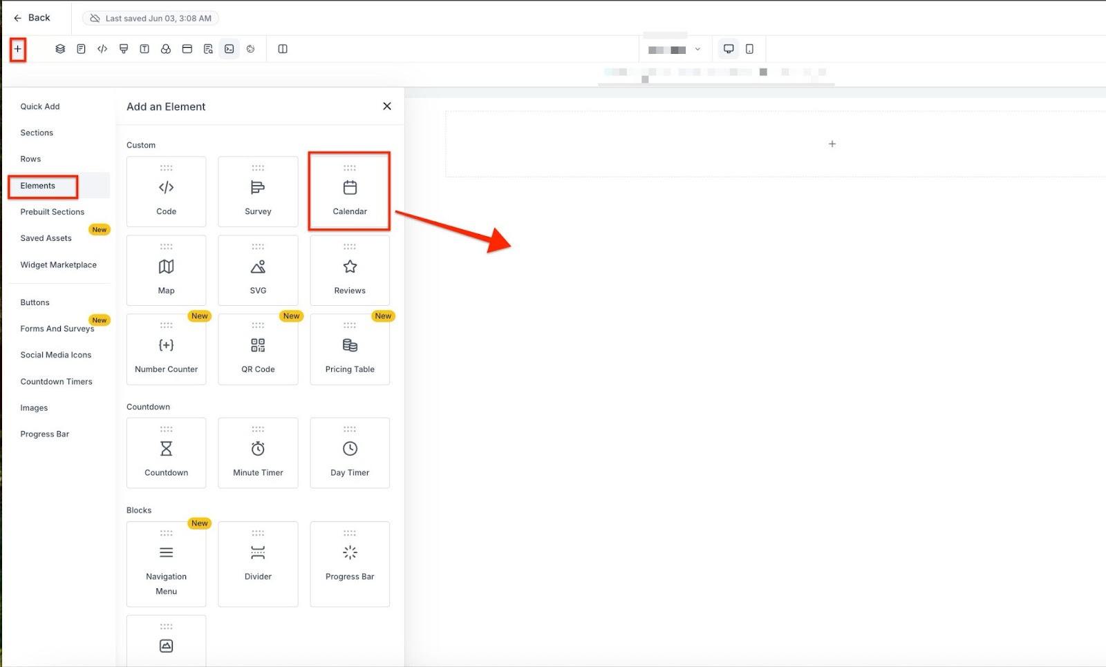 1- Add a Calendar Element: If needed, add a calendar element to your scheduling page using a drag-and-drop interface.