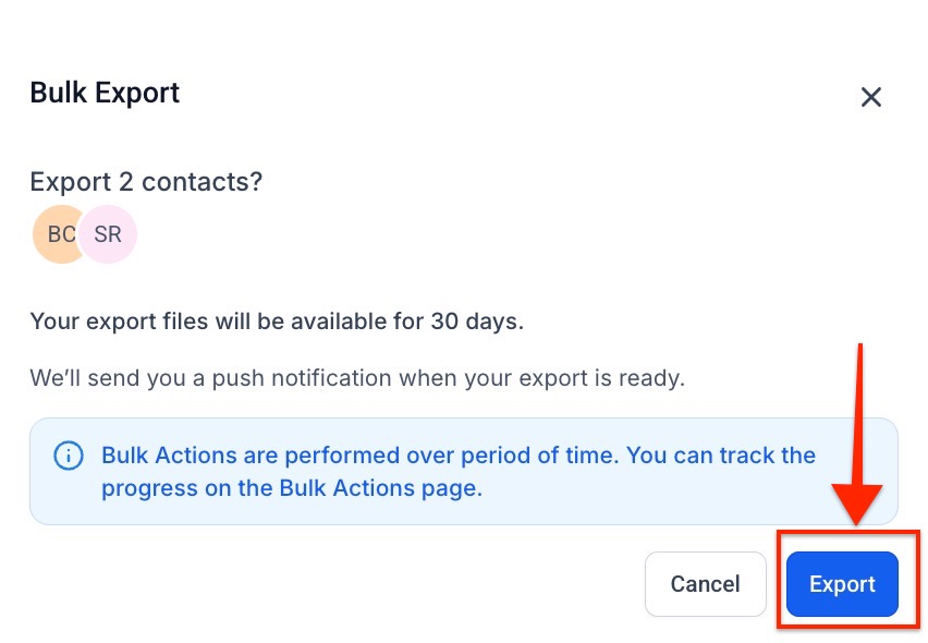 Answer: The Bulk Export feature allows you to export selected contact records as a .csv file, which will save to your computer. This is useful for backing up data or migrating contact lists. Select the data under Columns for that data to be exported.