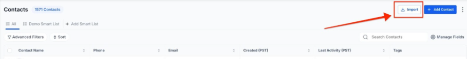 - Click on the Import Contacts icon.