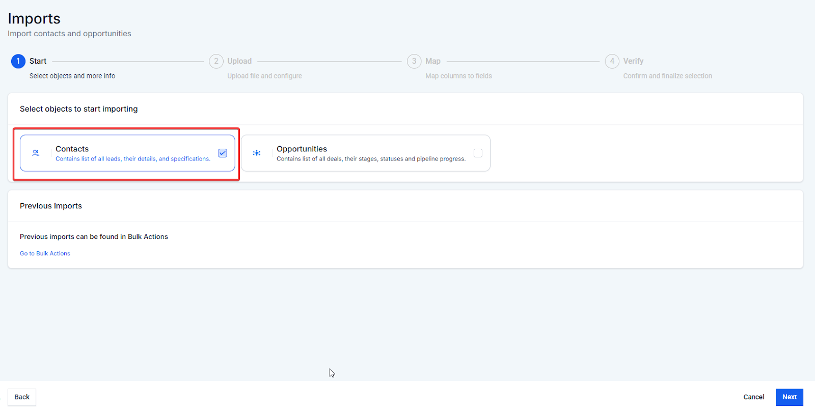 - Select Contacts and click Next.