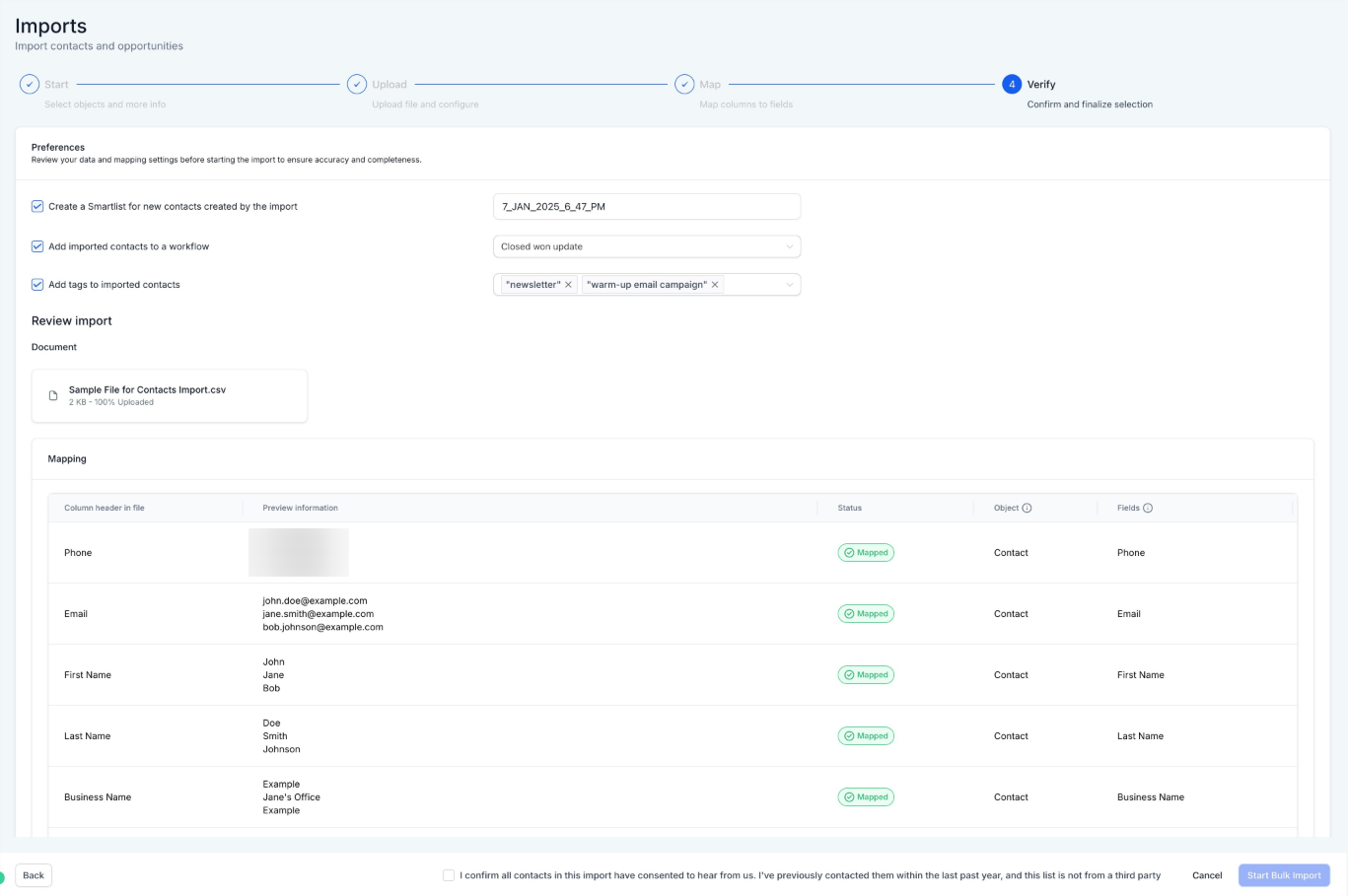 Confirm your field mappings and finalize your import settings.