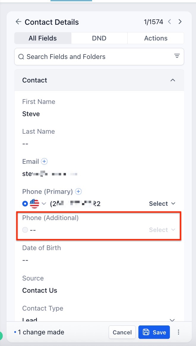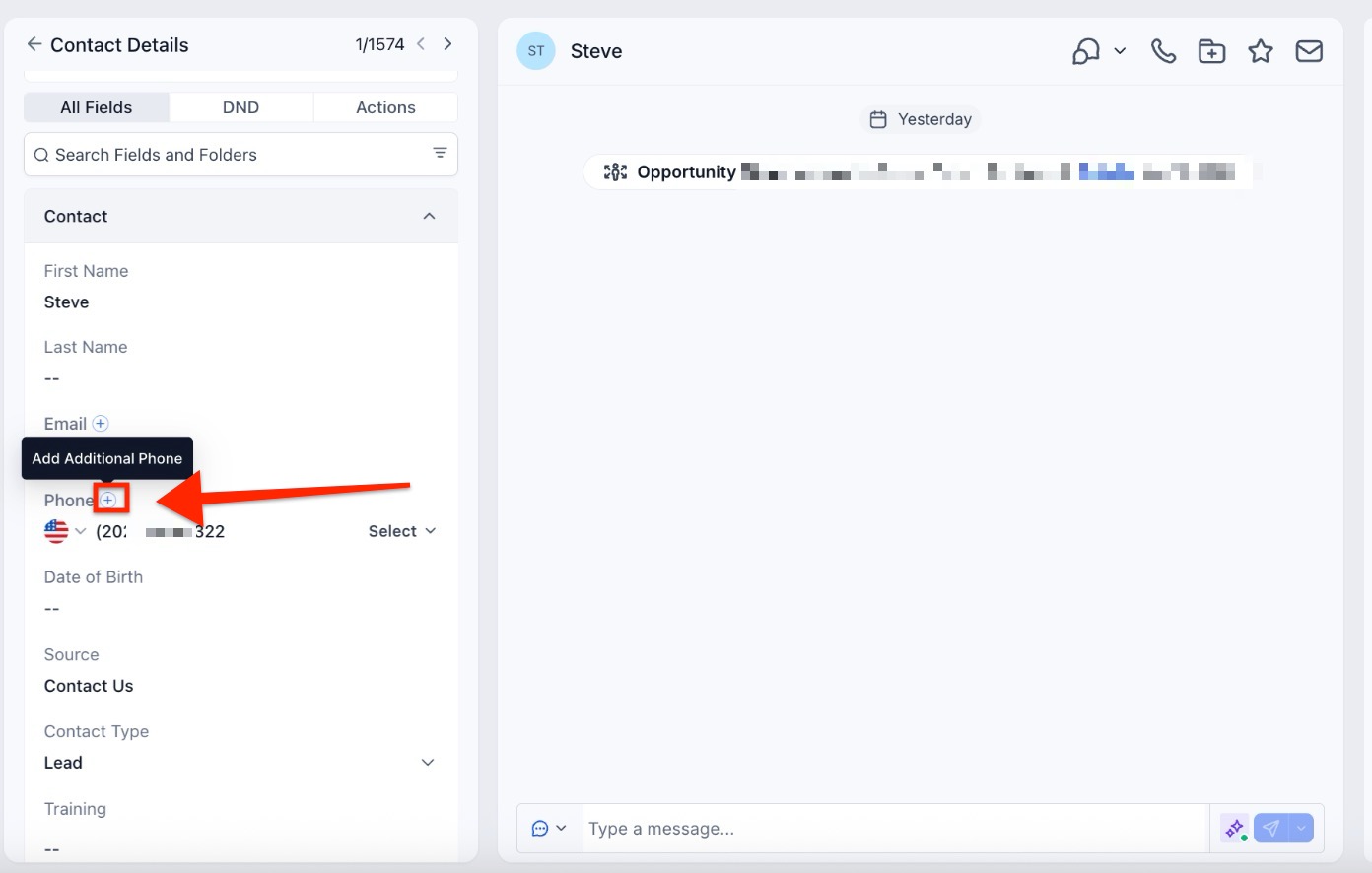 - You will see the ‘+’ button beside ‘Phone’, click that to add an additional phone number.