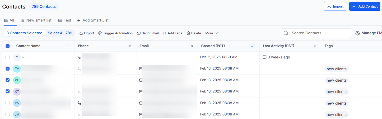 - Removing Duplicate Contacts: If duplicate contacts have been added to your system, use the Bulk Actions feature to select and delete these duplicates. This reduces redundancy and ensures better organization and communication.