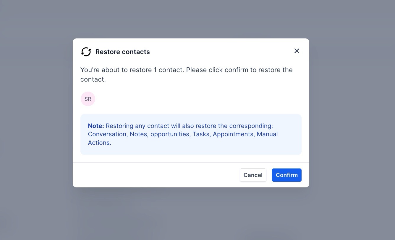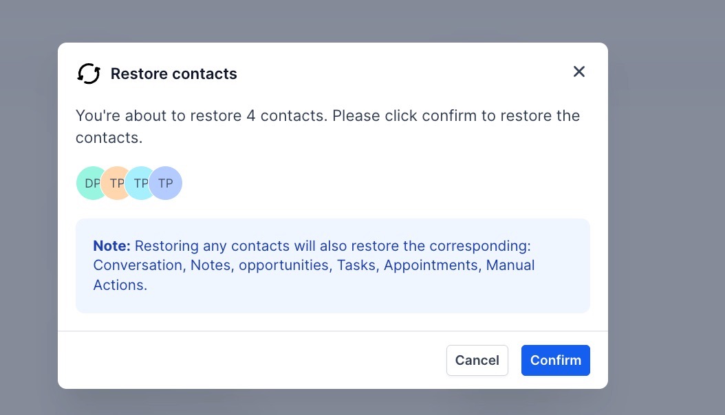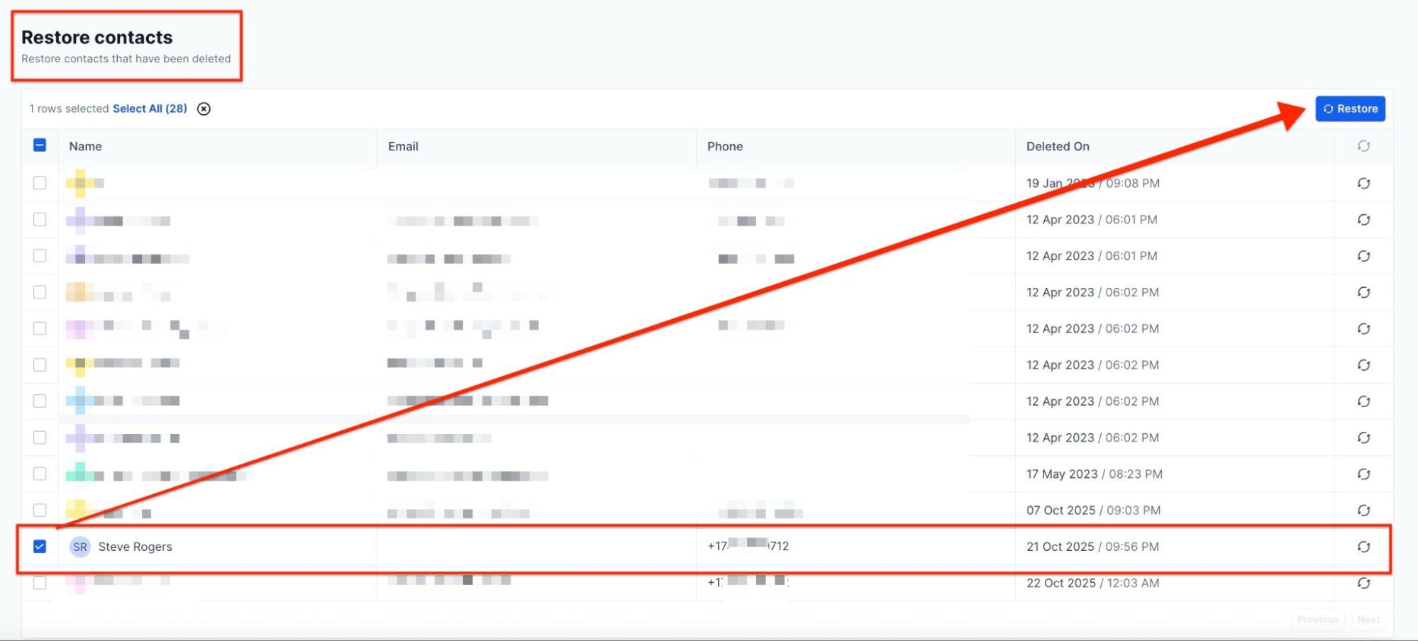 Bulk Action - Restoring Contacts: This option is used for restoring contacts that were deleted in bulk.