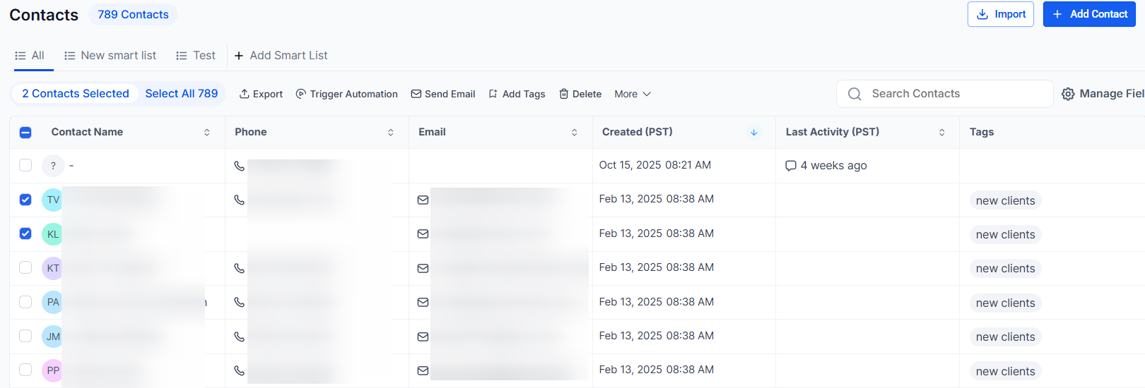 Answer: Yes, you can add multiple tags to selected contacts at once. In the pop-up window, type in keywords and select one or more tags to apply. Click "Add Tags" to apply them to the contacts.